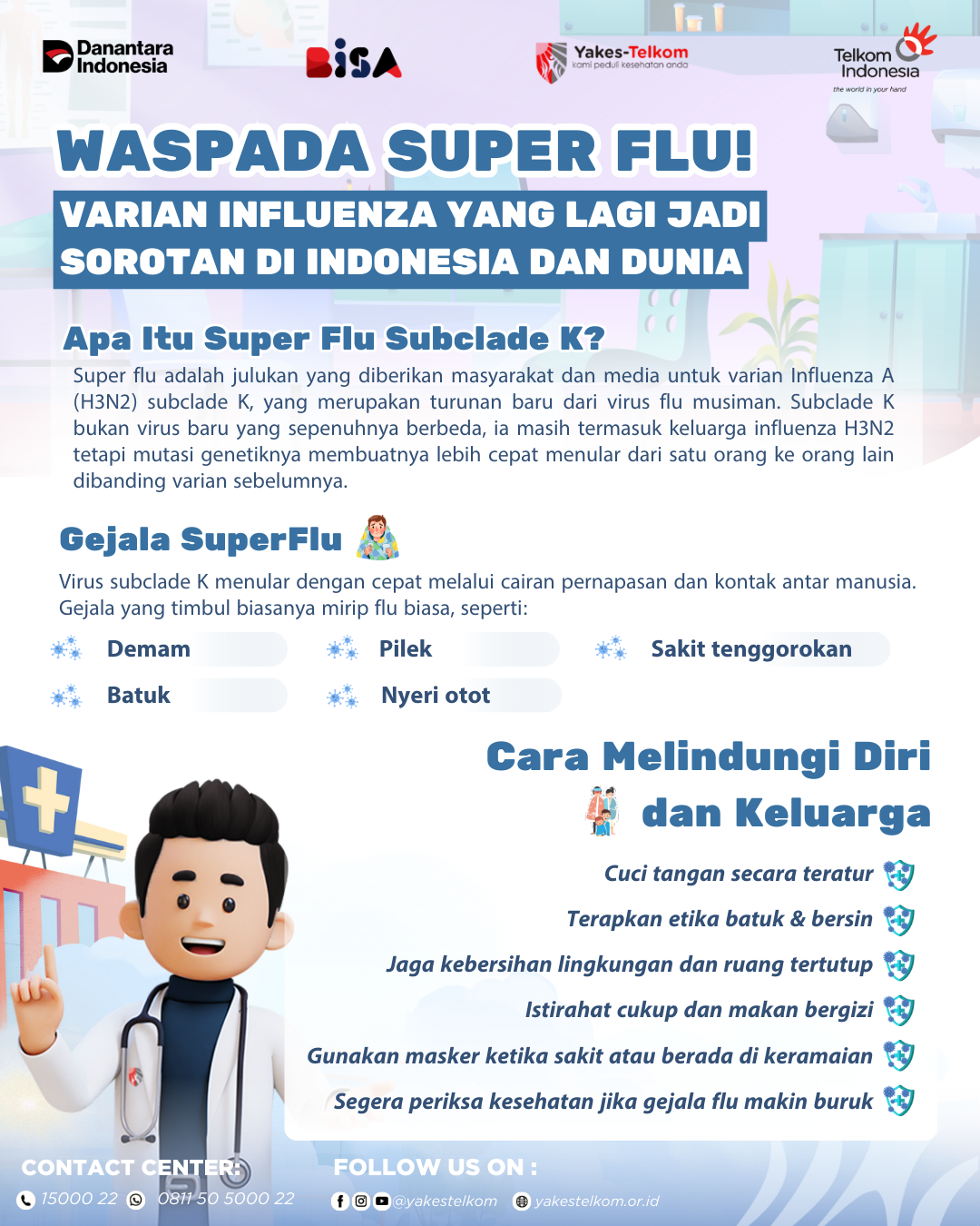 Belakangan ini istilah “super flu” makin sering muncul di pemberitaan kesehatan, terutama setelah varian baru virus influenza A tipe H3N2 yang disebut subclade K terdeteksi di berbagai negara termasuk di Indonesia. Meski namanya terdengar mengerikan, super flu ini sesungguhnya adalah bagian dari flu musiman yang sudah dikenal, namun punya beberapa ciri yang membuatnya cepat menyebar.